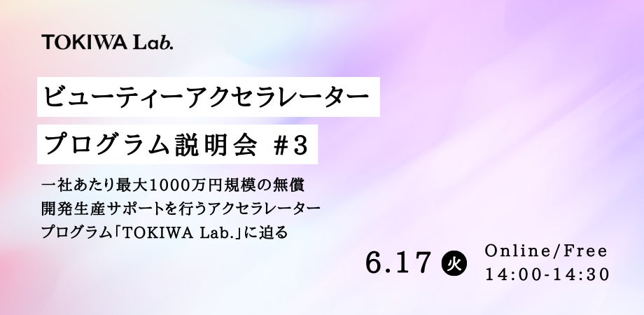 ビューティーアクセラレータープログラム「2022 TOKIWA Lab.」6月1日より募集開始2022.06.02